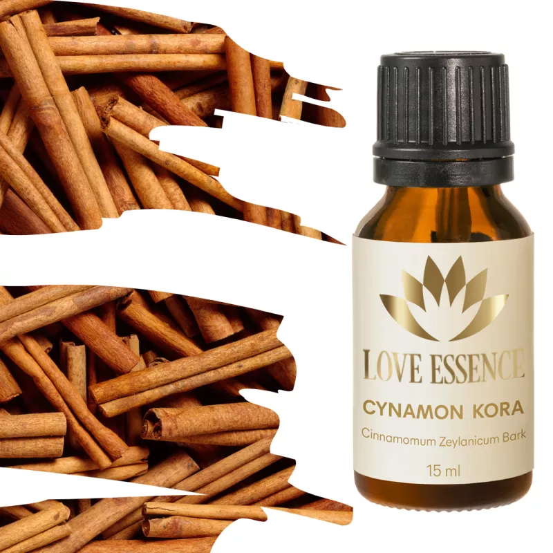 Olejek eteryczny z kory cynamonu ma ostry, ciepły i słodko-korzenny aromat, odświeżający umysł i poprawiający koncentrację. Stosowany w celu poprawy nastroju, zmniejszenia objawów depresji, lęku i strachu. Zwalcza mikroorganizmy i zapobiega infekcjom bakteryjnym i grzybiczym. Był pierwszym olejkiem, który mocno wspierał mnie podczas leczenia, zwłaszcza przy silnych bólach mięśniowych. Szeroko stosowany w kosmetykach i perfumach.