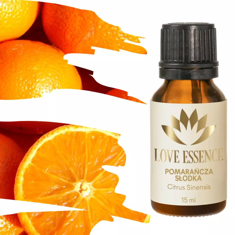 Olejek eteryczny ze słodkiej pomarańczy ma słodki, owocowy, lekki i orzeźwiający zapach. Delikatnie koi, odświeża umysł i uwalnia od wszelkich napięć, reguluje emocje. Wykazuje antybakteryjne i przeciwgrzybiczne właściwości. Wykorzystywany przy schorzeniach skóry, stymuluje układ pokarmowy. Zawiera wysokie stężenie d-limonenu, substancji która posiada silne właściwości antynowotworowe. Szeroko stosowany w leczeniu zaburzeń emocjonalnych. Wykorzystywany w przemyśle spożywczym, perfumeryjnym i kosmetycznym.