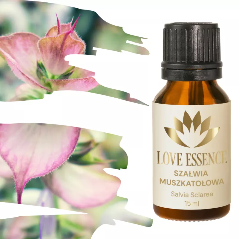 Olejek eteryczny z szałwii muszkatołowej ma ziołowy, ciepły, ziemisty i lekko kwiatowy aromat. Nazywany jest olejkiem " dla kobiet” ze względu na silne właściwości w leczeniu skurczów menstruacyjnych oraz objawów menopauzalnych. Ponadto od wieków stosowany był do wywoływania porodu. Znany jest tez z właściwości uspokajających, zwłaszcza w sytuacjach dużego stresu i szoku.